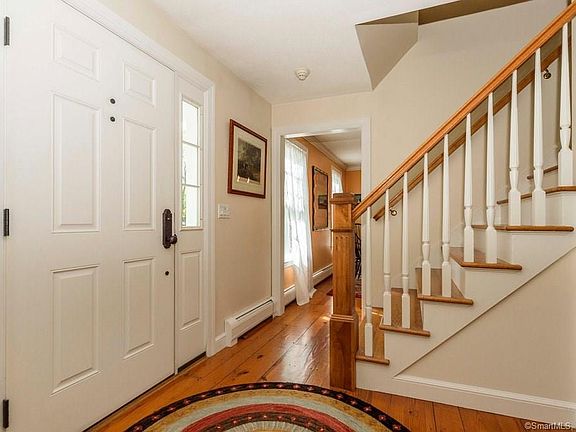 Outstanding neighborhood for this pristine colonial home with updates throughout! Enjoy this quiet, precious location, cul-de-sac and easy living; 2588sf with finished newer lower level adding 800+ sf. Lovely entry foyer welcomes you to spacious living & dining rooms, pine floors throughout entire home adds warmth & New England charm. Large eat-in kitchen w/ granite, breakfast bar, new stainless appliances, pantry & coffee/wine station is open to family room w/ cathedral ceiling, wood fireplace insert with beautiful reclaimed wood mantel. Also 1st floor bedroom/office with 1st fl full bath & laundry in hall. The wide oak staircase leads to 3 additional bedrooms, large master ensuite w/ walk-in closet & dressing area. New features throughout in baths, kitchen, crown molding in most rooms, all closets with shelving systems, solid wood 6 panel doors & hardware are some of the trendy updates. Freshly painted throughout! Outside shines with new front door & portico, blue-stone walkways & patios front and back. Large level 2 ac yard offers fabulous entertaining w/ in-ground pool added in 2005 with quality fence & trails that loop around, views of wildlife, sanctuary & waterviews make this home appealing & gracious living. Woodbury- a quaint village town, enjoy shopping areas, library & educational opportunities throughout Litchfield County.