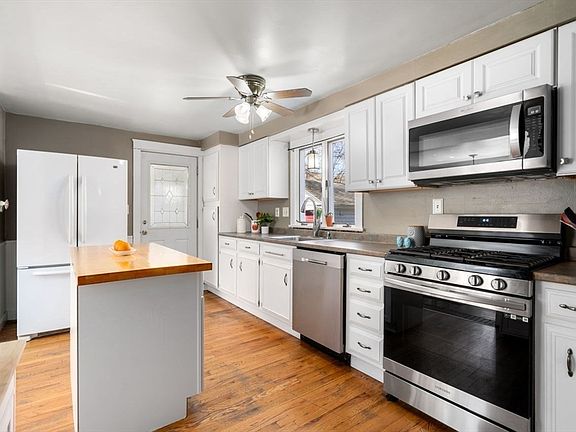 - Features: Ceiling Fan(s), Flooring - Hardwood, Kitchen Island, Stainless Steel Appliances, Gas Stove, Lighting - Overhead