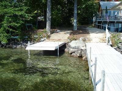 Beautiful cedar shake Lakehouse with a bright open concept interior that reveals by ar one of the most impressive views of the lake and mountains beyond. This is a stunning setting on a half acre lot with beautiful sandy beach and permanent dock with small boat launch. Large detached garage with roughed in pluming and storage above. This home is located on Black Cat Island, one of the few islands on Winnipesaukee with road access.