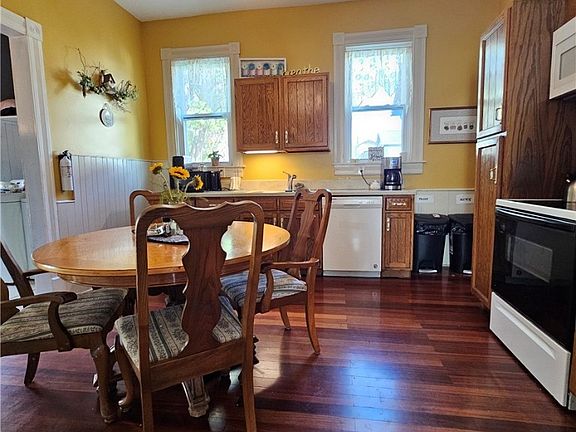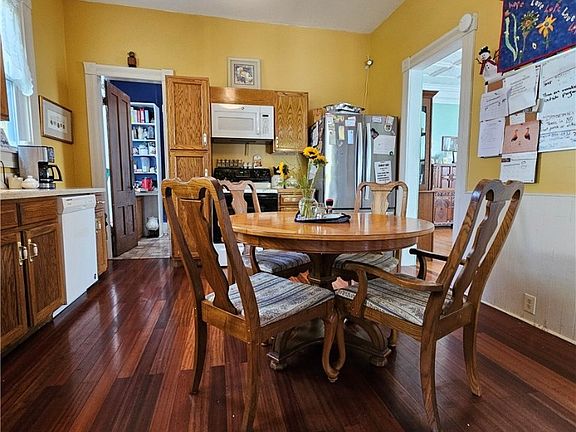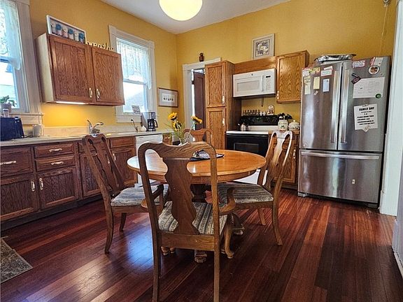 Step into this delightful Victorian home, where classic elegance meets modern living! Featuring a welcoming front porch that leads to a generous entry foyer. Inside, you'll find a spacious and updated eat-in kitchen with oak cabinets, stone countertops and all appliances included. The convenient first-floor laundry and bedroom make everyday living a breeze. No shortage of natural light throughout this home, including a bay window and a bright formal dining room. Comfortable living room and parlor space offers ample room for entertaining, highlighted by two ornate decorative fireplaces. Upstairs, you'll discover four generously sized bedrooms, along with a full bathroom that adds to the home's functionality. Updates include on-demand hot water heater, roof, furnace, windows, bath & kitchen. Don’t miss out on this charming blend of character and comfort!