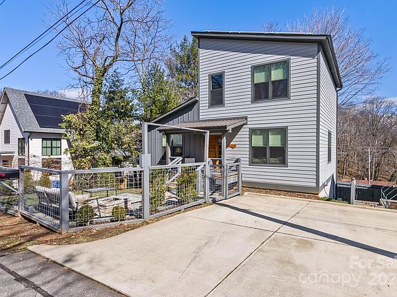 This West Asheville MODERN CUSTOM SOLAR HOME was built in 2019. Sitting nestled on a quiet cul-de-sac street just half a mile from bustling Haywood Road and all its amenities, including fine dining, breweries, art galleries, diners grocery stores and more!! Inside this home you'll discover an array of custom touches like a modern gourmet kitchen with sleek floating shelves, spacious quartz center island, top-of-the-line stainless steel appliances, and stunning wood floors. The main level primary bedroom suite is a retreat with floor-to-ceiling windows offering ample natural light, a large walk-in closet featuring custom shelving, and an ensuite bath. Upper level has 2 additional bedrooms and an office nook. 2nd living quarters located in the basement, separate entrance, partial kitchen, is is a permitted short term rental, permit does not convey. Enjoy outdoor living on the private back deck or gather in the fenced yard with a stone patio and fire pit for cozy evenings.