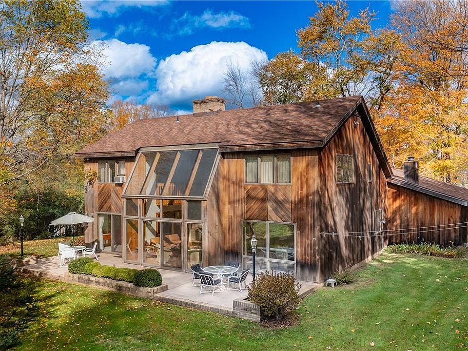 Start your next chapter surrounded by natural beauty. Rural views across the Harlem Valley, with the Ten Mile River and western hilltops in the distance. Set above the road at the end of a private drive, this contemporary home has never been on the market. Plenty of room for everyone with 2,671 SF. Passive solar heating is created by the unique and beautiful two-story sunroom. With windows that extend floor to ceiling and continue to the roofline, this solarium is open indoors to almost every room in the house. The warmth flows throughout. Enter through the front porch at grade level and you are immediately struck with a dramatic open space, lit by streaming sunshine. To the right is the large kitchen that has plenty of countertop and cabinets. Four large casement windows span a large countertop. The kitchen has room for a dining set and most of the appliances have been recently updated. The kitchen is open to the dining room. The dining room with built in cabinetry has sliding glass doors to both the sunroom and the side patio. The sunroom features a brick wall and wood burning fireplace. It is open to the second floor with interior balconies. Opposite the dining room, through the sunroom and another set of sliding glass doors is the formal living room. A first floor bedroom with an adjacent full bath is at the front of the house. From the entry, an open staircase leads to an interior balcony that extends above the sunroom and on each side of the home two additional large bedrooms, both with sliding glass doors to an interior balcony, en suite full baths, walk-in closets, and access to the attic. The two car garage is attached to the home and is accessible from indoors. From the back of the home there is approximately 200+ feet to the back property line. With clearing, like the neighbor next door to the north, there is potential to create a very large backyard. Outdoor activities abound so close by! Within two miles you can kayak or fly fish the Ten Mile River, hike the Nellie Hill Preserve, visit the natural Dover Stone Church cave, or hunt the private Ten Mile Preserve. Shopping and restaurants less than a five minute drive. One mile from the Dover Plains MTA station for easy NYC trips, walking distance. Be sure to click on the virtual tour for a panorama shot of the home and property. Use your mouse to do a full 360 degree tour of this special offering. Additional Information: Amenities:Storage,HeatingFuel:Oil Below Ground,ParkingFeatures:2 Car Attached,