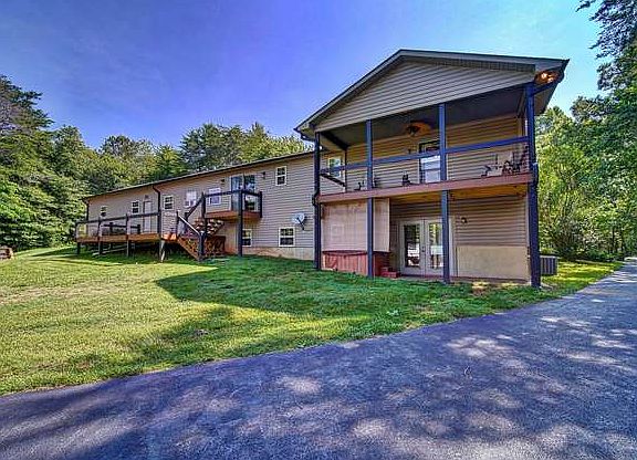 Beautiful, well-kept family home just a few minutes walk to Lake Nottely. This home has everything! 3 LARGE bedrooms, 3 full bathrooms, and a newly renovated main floor. Master on main with heated bathroom flooring! Blue tooth speakers in kitchen and master bathroom.Private covered balcony deck off of master bedroom. Wood burning fireplace in living room.Large laundry/mudroom. Full, finished basement has an oversized bedroom, bathroom with waterfall shower, walk-in closet, and a kitchenette. Outside the home boasts of a 6 stall stable and beautiful pasture land for grazing, a 24x30 work shop, a concrete patio fire pit area, jacuzzi that stays with the home, over size 2 car garage, and less than 5 year old new siding on the home! And...UNRESTRICTED!