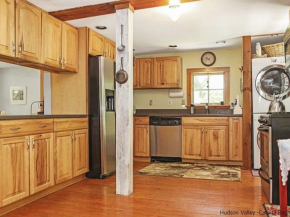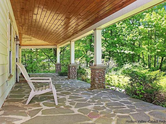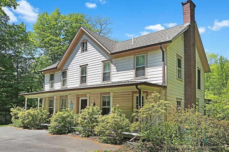 This 1850s Farmhouse has all the country charm you could ask for in an upstate NY home. Get out the rocking chairs as this home boasts not one but two lovely porches. Located in both the front and back of the house the porches provide plenty of space for relaxing outdoors or entertaining guests during the warmer months. Walking into the front foyer you are immediately greeted with that warm and cozy feeling as you take in the hardwood floors, beamed ceilings, wood trim and old school banister. The living room is large with a wood burning fireplace and many windows bringing in a good amount of natural light. The kitchen is country perfect, with a good amount of cabinets and workspace, and it includes a door leading to the front porch. The formal dining room is divine offering a good amount of space and a sweet atmosphere to enjoy many meals. Continue on to the back of the house to the back foyer with 2 coat closets and a back door leading out to the back porch overlooking a delightful and level backyard. Completing the main level is a half bath. Upstairs there is a grand master suite, lots of space, with big windows, a master bath, two closets and a window reading nook. Wide plank floors grace the 2nd level hallway and the 2 well-sized guest bedrooms and full bath. This property is only one block from the Ashokan Rail Trail, a quick drive to town, not far from ski resorts, hiking, and the villages of Woodstock and Phoenicia. Master bedroom floors were redone in 2013 and roof is 2 years old.
