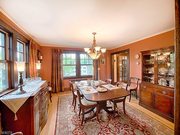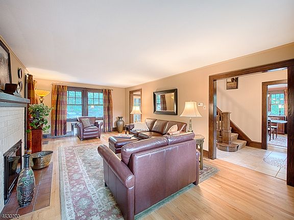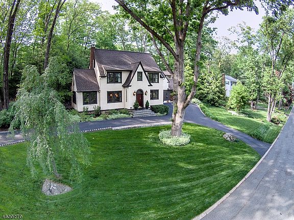 Tudor revival mixes seamlessly with the colonial style layout in this updated home. The circular drive along the front of the emerald green lawn leads to this memorable home with an easy living layout. The front vestibule with arched entrance opens to the spacious foyer with access to the principal rooms on the first floor. The living room features new true divided light windows, a central brick fireplace with chestnut mantle, newer wood flooring and a French door leading to the sunroom or office. Built in bookcases, new casement widows, Mexican tile flooring and beautiful wainscoting ceiling are features in the sunroom. Flanking the living room, the formal dining room also features new windows and wood flooring, crown molding and a swinging door leading to the butler’s pantry with wet bar. This area opens to the newer kitchen with stunning addition. A garden window at the far end of the kitchen brings the outside in and the brick fireplace central to the room creates a warm and inviting ambiance to this sunny space. A French door leads to the blue stone patio with lovely stone retaining wall, perennial gardens and stone steps to the lawn. A short flight of steps off the kitchen leads to the new addition housing a large family room and recreation room. The second level includes 3 bedrooms and 3 full baths. There are 2 bedroom suites, the master suite and Princess suite. The master features a spacious bedroom with new spa style bath and a walk-in closet. The third level is ideal as a nanny or in-law suite with 2 more bedrooms, a full bath and the option of making one of the bedrooms a sitting area creating a private bedroom suite. The finished basement is perfect for an exercise room or additional recreation space. A 2 car attached garage, circular drive plus additional driveway parking easily accommodates visitors and large gatherings. Nestled in the sought after “Hill” section of town on a beautiful corner lot, this home is close to all 3 award winning town schools, the town walking path, town lakes, shopping, bus stop to NYC, shopping, library and town restaurants. Completely move-in ready and impeccably maintained, the home is the ideal choice to enjoy the storybook town of Mountain Lakes from this perfect home that appears to have jumped out of a storybook with its Tudor charm and curbside appeal.