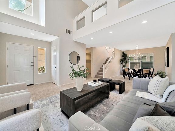 Step into luxury and comfort in this stunning, recently refreshed home located in the desirable Foothill Ranch community. Natural light floods every corner of this spacious residence, highlighting the soaring vaulted ceilings, new quartz countertops, fresh carpet, and calming neutral paint tones throughout. This home offers a seamless flow with a formal living room, dining room, and an open concept kitchen and living area complete with a cozy fireplace, perfect for family gatherings. Step out onto the elevated back patio to enjoy breathtaking views stretching from Foothill Ranch to Catalina Island, while your kids and pets play in the lush backyard below. Upstairs, the primary suite boasts vaulted ceilings, a large en suite bathroom, and a walk-in closet, all drenched in sunlight. The additional bedrooms and full bath provide ample space and privacy for each family member. Situated on a peaceful street, this home is within walking distance of Foothill Ranch Elementary, Foothill Ranch Library and Borrego Park. Explore the nearby Whiting Ranch Wilderness Park and take advantage of the many shopping, dining, and entertainment options that Foothill Ranch has to offer. Experience the fresh and clean feel of this meticulously maintained home that will make you feel like it was built just for you. Embrace a new lifestyle in Foothill Ranch - your dream home awaits!