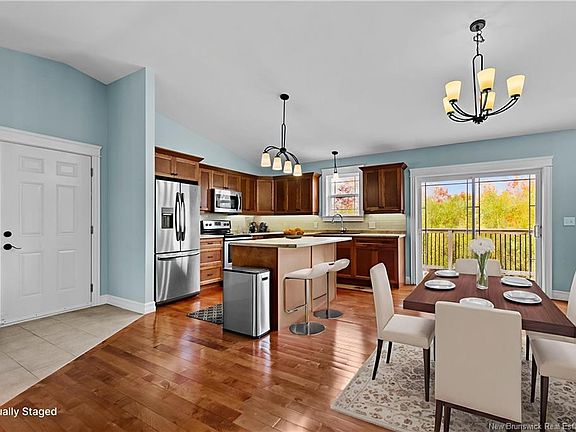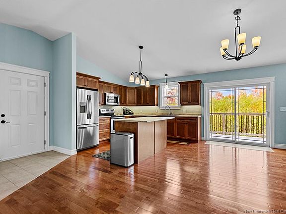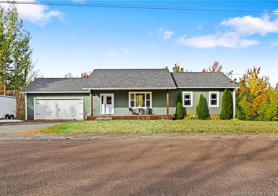 Welcome to 31 Lyman Street in Burton, where country charm meets modern comfort. Tucked away on a quiet, dead-end street with no through traffic, this walkout bungalow sits on a private, landscaped 2-acre lot. Enjoy the peace of rural living while being less than 10 minutes to Oromocto, about 25 minutes to Fredericton, and minutes from CFB Gagetown. Step up to the covered front porch and into a bright, open-concept main living area with 10-ft vaulted ceilings. The kitchen offers custom cabinetry and flows into the dining and living spaces, where patio doors lead to your two back decks, perfect for relaxing or entertaining. The attached double garage is conveniently located off the kitchen. Down the hall is a spacious primary suite featuring a custom tile, doorless shower in the ensuite, 2 more bedrooms, and a main bath. Finished lower level with walkout, complete with 8-ft ceilings, features a large family room/theater room, an oversized 4th bedroom, a home office, spacious third bathroom, laundry area, and mechanical room. The backyard is level and suitable for parking an RV and space for an above ground pool. With its peaceful location, modern features, and thoughtful design, this home delivers the perfect blend of comfort, privacy, and convenience.