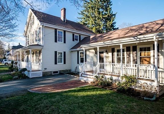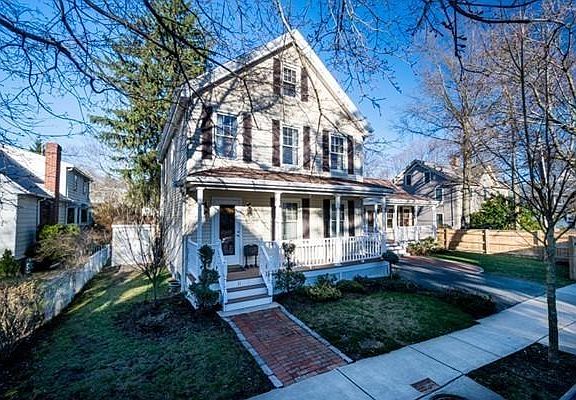Great Location...Open floor plan. Updated kitchen with Hubbard lighting/granite counters. Family room has cathedral ceilings, ceiling fan, gas fireplace, & custom built in wood bookshelves. Extra room for office etc. Wood floors throughout, many windows to allow natural light, central AC and gas heating. Beautiful wood crown molding around doors and windows. Charming farmers porch. 3 bedrooms upstairs. 1 full bath w/tub upstairs and 1 bath on main floor with shower. Off street parking. Fenced in backyard without maintenance of grass. Abundance of storage space in attic, large cedar closet, and basement. Corner lot with quiet side street. 1 block to everything - bus stop, commuter rail, & Roche Bros all at end of street. Check out drone video of the property, neighborhood, & excellent location! Access our 3D interactive photos by clicking on the icon.