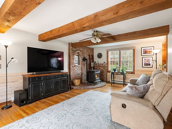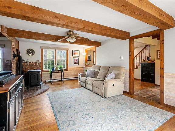 Well Maintained Home on a wonderful country cul-de-sac road! You will love the Bright and Cheery Living Room, with its beamed ceiling, pellet stove, brick hearth, and sliders to the backyard. Lovely Kitchen with wood / beamed ceiling, pantry closet and is open to the Large Dining Room. Office / Guest Room and remodeled bath finish the 1st Floor. Upstairs you will find the “King Sized” Primary Bedroom with plenty of storage space including a walk-in closet. 3rd spacious front to back bedroom and remodeled bathroom complete this floor. Partially finished heated basement gives the option for a family room, exercise / playroom, laundry room as well as plenty of storage space! Enjoy the beautiful outside setting of this home on your composite deck or patio. Other updates include: New Chimney from roof line up (2022), Many New Triple Pane Windows (2023), New Well Tank (2021) and New Roof (2008). Make your appointment to tour this home today!