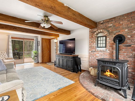 • Features: Wood / Coal / Pellet Stove, Ceiling Fan(s), Beamed Ceilings, Closet, Flooring - Hardwood, Slider