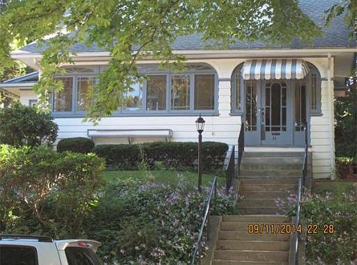 A piece of country on the West Side! Enjoy the remodeled eat-in kitchen and bathrooms fireplace, enclosed front porch, gleaming hardwoods, ceiling fans, large deck over-looking a tiered back yard, outdoor fireplace, sunroom and lots of light! Master bedroom hosts A/C, a cedar closet and a skylight. There is a half bath and slider to the deck off the kitchen. Cozy landing would make a great office or adorable sitting area! Grandfather clock in foyer is included!