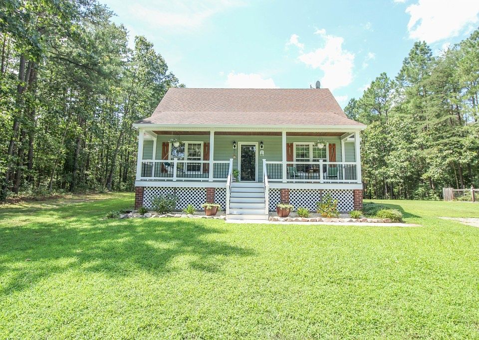 It's all in the details! Charming and meticulously cared for home now being offered for the first time on a corner lot in The Woods at Herring Creek Subdivision! With over 1700sq.ft of living space nothing has been missed here from the composite decking, granite countertops, soaring vaulted ceiling upon entry, 3 spacious bedrooms, large den, and so much MORE! Downstairs you will find a functional & spacious floorplan with an eat-in kitchen, oversized den perfect for gatherings, a private office, and 2 main level bedrooms & full bath. Upstairs the Master Suite does not disappoint w/ a walk-in closet & ensuite w/ double vanity, Corian countertops, and a large soaking tub! Outside is perfect for entertaining with the 16x30 newly built back deck, plenty of yard space at almost 3 acres, a 24x30 custom carport on cement slab, and perfectly landscaped sure to impress all located on a quiet, no outlet street. Enjoy all of this and the peace and calm only 20 minutes from any and everything you could possibly desire! A true must-see!