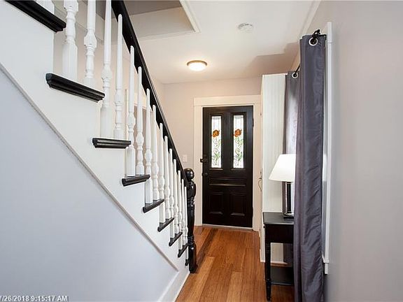 This charming circa 1850 New Englander retains much of its original charm, but has been thoughtfully updated. With three bedrooms, 2 up and 1 down, and two full baths, this home allows for one floor living if desired. A farmer's porch welcomes you and your guests. The remodeled eat-in kitchen boasts stainless steel appliances, and a pantry. The living room has a pellet stove for ambience and warmth. The upstairs bath has a separate shower and jetted tub. A deck off of the back offers a more private space for outdoor entertaining. An oversized, one car garage has plenty of room for storage. All of this within minutes of shopping and restaurants. Don't wait to call this special place home.