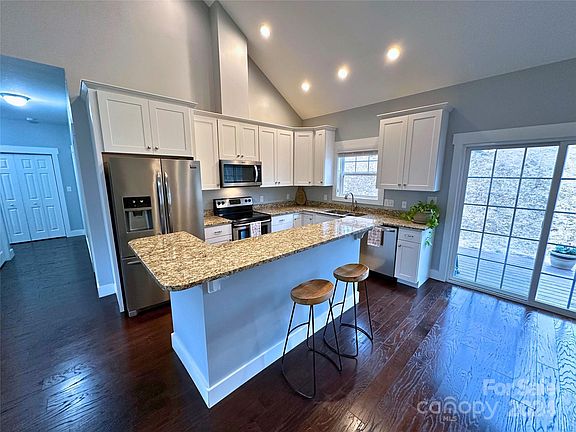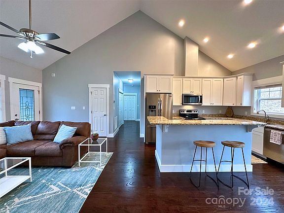 Nestled among the serene beauty of the mountains, this charming one-story home offers a tranquil retreat on a secluded lot. The west-facing front porch is the perfect spot to unwind and marvel at the stunning sunsets that paint the sky each evening. Step inside to discover an inviting open floor plan with vaulted ceilings that creates a sense of spaciousness and airiness throughout the home. The primary suite is complete with a large walk-in closet, private bathroom, and ample room to unwind. Two additional bedrooms offer picturesque views framed by large windows, inviting the beauty of nature indoors. The home also features 10-foot ceilings, abundant storage space, and plenty of natural light. High-speed Starlink internet is already installed, allowing you to work and stream with ease. Whether you're lounging on the front porch, gardening in the yard, or simply soaking in the serene surroundings, this mountain retreat offers a perfect blend of tranquility and convenience to AVL.