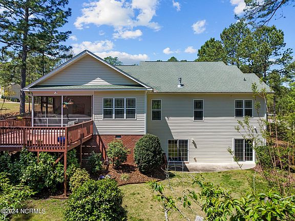 *ANOTHER PRICE IMPROVEMENT AND SELLER IS STILL OFFERING A $10,000 INCENTIVE FOR BUYER TO USE AS THEY CHOOSE*Don't judge a book by its cover, or a house by its unassuming first glance. You will be very pleasantly surprised when you walk through the front door of this humble abode. Rich, mature landscaping and beautiful pops of color including new Zoysia, welcome you in the front yard. The covered front porch is very rocking chair worthy, and when you get inside you will be wowed by the trim work, bead board, chair molding, tray ceilings, crown molding, hardwood floors and built ins. Be sure to notice the new fireplace surround that owners had done when they switched out the non vented for a vented gas fireplace with blower. Battery operated pilot will allow the FP to work even when the power is not. The well maintained home was built by Terry Michael in 2009. It has a wonderfully livable first floor with a split BR plan with lower level that can be used as a 4th BR and Bonus/Family Rm (and/or guest suite) & 3rd full bath! Enjoy quiet cul-de-sac location near the main entrance into Pinehurst No 6. The back yard feels like your own personal park with mature vegetation, a 6ft privacy fence, French drain system and terraced beds. A 4 zone in-ground sprinkler system waters front, back and side yards. Backs up to greenery. You will probably find yourself doing much of your living , including enjoying the sounds of nature, sitting on the screened in back deck that adjoins a spacious uncovered rear deck. Chefs of all abilities will enjoy the large eat in kitchen featuring granite counters, glass tile back splash, large breakfast bar & charming breakfast nook. Display your gorgeous china or family heirlooms in the cabinets with glass fronts. New stainless appliances (2022). Gorgeous Plantation shutters found throughout. Fully vented Mendota luxury fireplace appliance (2019).