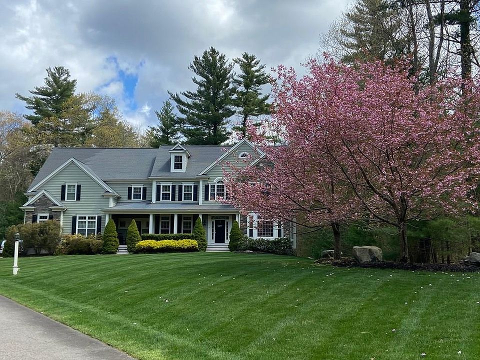 Private Wood Cliff Estates five bedroom colonial! Set at the end of a private driveway. Great back yard for the kids, a pool? Adjacent to Rocky Woods Reservation. Step into the woods for hiking, biking or a walk! Entry from the farmers porch to the home office and the living and dining rooms with bay windows. Hardwood flooring with mahogany inlay. Wainscoting, Crown and dental molding, columns and the fireplace highlight these rooms. The open floor plan of the kitchen, family room and screen porch enhances family entertainment. Vaulted family room, stone fireplace and custom built-ins.The spacious mudroom provides entry from the three car garage. A rear kitchen stairway leads to spacious kids rooms. The grand front stairway leads to classic built in bookcases. Two bedrooms share a bath, one en suite bedroom. The Masters spacious bath with spa tub, walk in closet and vaulted ceiling. Walk up third floor and any game can be played in basement. Medfield has amazing schools!