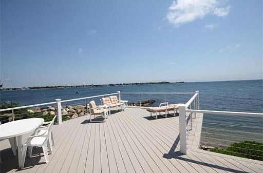 Crushed gravel drive meanders through mature landscaping to the oceans edge. Privately situated this understated contemporary home takes full advantage of the magnificent oceanfront setting. Cathedral ceilinged foyer leads to two tiered living room with massive fireplace and breathtaking ocean views. Sliders open to spacious wrap around decks that jut out dramatically over the beach and bay. Newly remodeled kitchen with granite counter tops, tiled floors is adjacent to formal dining room with custom built-ins and French doors to waterside deck. Large master suite, again with exquisite water-views includes full bath and walk-in closetry. Three children's/guest bedrooms and full bath complete this level. Lower level includes fireplaced family room, full bath, bedroom, laundry room and cedar closet. Attached two car garage, work shop and storage galore. Enjoy a cocktail on the deck while watching the boats sail by, swim from your private white sandy beach or cast a line from your jetty!