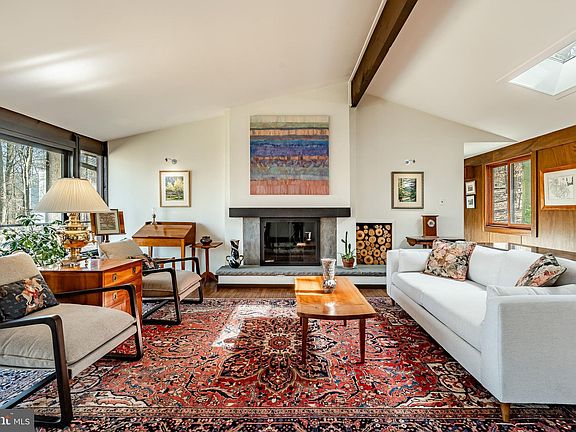 Nestled in the heart of Charlestown Township's rolling hills, at the end of a secluded lane, lies an exceptional mid-century modern home with a redwood exterior. Surrounded by 3.4 acres of wooded beauty, this 5-bedroom residence spans 3500 sqft of meticulously maintained and thoughtfully improved living space, offering the serenity of a vacation retreat within minutes of Valley Forge Mountain, Great Valley High School, major transportation routes, shopping, and the vibrant downtown areas of Malvern & Phoenixville. The upper level is a showcase of architectural brilliance with floor-to-ceiling windows that flood the space with natural light and provide serene views of nature. Central to this level is an expansive living room, featuring a recently inspected and serviced fireplace, promising cozy gatherings. The kitchen is a cook's dream, boasting granite countertops, a large pantry, and a substantial island, complemented by an adjacent den with wall-to-wall windows and doors opening to a Trex-style deck. This space is perfect for entertaining or relaxing with a book as the seasons change. The primary suite, located for privacy, offers stunning views, an elegantly appointed bathroom with a large tub and spacious glass-surround shower, and a generous walk-in closet. Completing this level are a second bedroom, a powder room, and a formal dining area. On ground level, the continuation of floor-to-ceiling windows ensures a bright and inviting atmosphere. Here, a vast family room with another fireplace awaits, alongside a butler’s kitchen equipped with a small refrigerator and sink, perfect for entertaining. This level also features three additional bedrooms, each with ample light and views, a full bath, and a practical storage/mechanical room. A laundry room and access to a two-car garage, outfitted with a 50 amp electric vehicle charging system, round out this floor. This home's exceptional condition is supported by documented upgrades, including a newly installed roof, septic system, 400-amp electrical service, replacement windows, exterior landscape lighting and an expanded deck, among other enhancements ensuring buyer confidence and comfort. Charlestown Township, is in close proximity to Malvern or Phoenixville, offers a unique character within its 12 square miles. Over 40% of the township is preserved, ensuring open spaces, scenic views, and well-maintained parks. This blend of natural beauty, convenience to urban amenities, excellent schools, and transportation, combined with this stunning home, presents an unparalleled lifestyle opportunity. Be sure to explore the extensive list of upgrades attached to the seller's disclosure, as well as the home, pest, radon, and water test reports provided for your review.