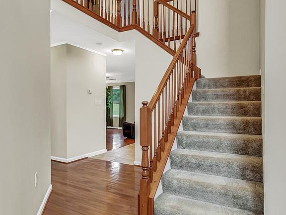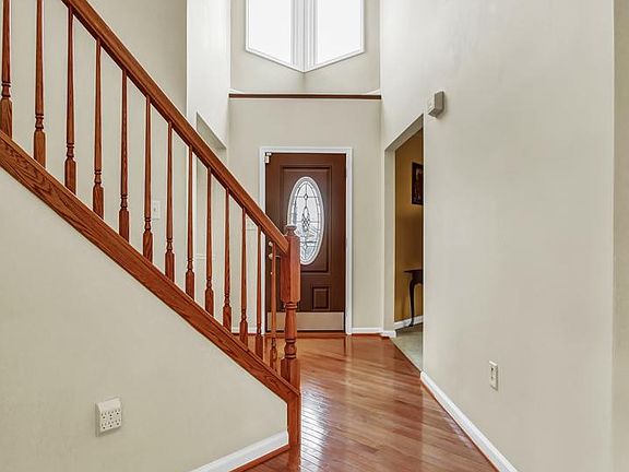 Move Right in to this 4 bed, 2.5 bath Colonial-Amazing 2-story foyer leads to a light filled home complete with crown molding through out-Sun filled Kitchen is truly the heart of the home, as you can relax at the center island watching the kids play in the backyard-Kitchen also overlooks the family room and has sliding doors leading to deck and backyard complete with fire pit area-First floor features 9 ft ceilings, ceramic tile, hardwood floors, laundry room, formal dining room, and a den/office area off the foyer-Double door entry leads in to large master bedroom suite, complete with large walk in closet, and a bathroom oasis featuring double vanity sinks, soaking tub, separate shower-large, unfinished basement is just waiting to be finished off, already has sump pump and rough in plumbing for future bath-Front porch and extensive landscaping as well as great view from back deck , with feeling of privacy within a neighborhood