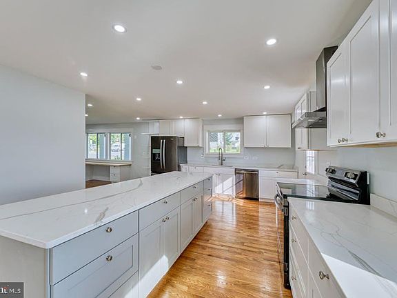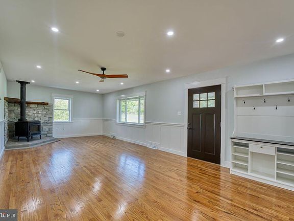 Gorgeous and completely renovated all brick rancher in the heart of Lovettsville with sparkling in-ground swimming pool and tiered trex deck highlighting amazing backyard oasis!!! Per seller: solar panels cover approx. 65% of power bills! Quick access to restaurants, shopping, town square, walking trails, and all that Lovettsville has to offer! Once you step through the threshold of this home, you will be swept into the showroom of a new construction home. Breathtaking 2024 custom remodel creating a modern, wide open floorplan and enormous kitchen! Chef's dream kitchen is an absolute masterpiece with deep veined white quartz counters, huge island w/breakfast bar, open shelving, white soft close cabinets, walk in pantry, and brand new Samsung appliances! Massive dining room/sunroom with immense charm and wall of windows overlooking stunning backyard and swimming pool. Perfect to enjoy those Thanksgiving gatherings. Family room features lovely wood stove with stone hearth to cozy up around on those winter evenings. Hardwood floors throughout! Updated bathrooms. Custom open stairway leading to basement. Incredible laundry room with laundry chute, cabinets, and folding shelf. Must see, true built out workshop in basement with exterior and interior access, shelving, tool storage and woodworking areas. Basement has recreation room, full bathroom, storage room, and hidden bookshelf reveals private office/workout room/vault! Pool room shed. Great curb appeal. Stunningly remodeled in 2024! Recent updates include: 2024 electric panel. 2024 water heater. 2024 pool equipment. 2018 roof. 2018 solar panels. 2016 water softener. 2024 deck renovation. 2024 basement remodel. 2024 custom kitchen. 2024 front porch.
