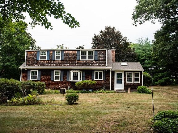 Classic New England Red Cedar shakes Cape Cod home!. Five bedrooms, two full baths and central air! Hardwood floors throughout, have just been refinished , and most rooms freshly painted. One owner home lovingly maintained! Sun room, off kitchen, with sky light, is separate electric heat and opens to the private back yard. Newer windows, roof 2011 and entire chimney repointed from the ground up, approximately 8 years ago, APO. New carpet in simple rec room. Put in your own personal touches and you will have a warm and cozy home. Sump pump was put in 5 years ago when neighboring trees were cut down, but very rarely goes on, APO. Inground sprinklers front and back. Easy to show!!