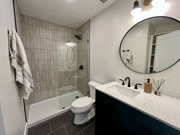 Enjoy a full-size in-unit washer and dryer, linen closet, porcelain tile shower with a chic, modern vanity, and a bedroom ceiling fan. Building highlights include elevator access, an upgraded secure video entry system, reserved on-site parking, pet-friendly living, and a one-of-a-kind outdoor space for daytime relaxing and evening gatherings.
