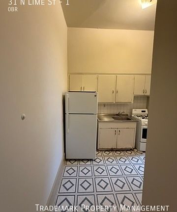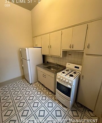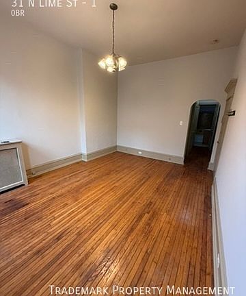 31 N Lime St #1 (unit is getting painted and cleaned ASAP) Nice and spacious studio right near downtown Lancaster City. This unit is a 1st floor studio apartment with a nice sized separate kitchen and bathroom. The living room has nice high 13 foot ceiling and large windows. Heat is included. Tenant pays for gas (stove), electric, and a $45/month Resident Benefit Package (includes renters insurance, pest control, 24 hour maintenance line, and more) Min 620 credit score required. We also look at rental history and income to get you approved.