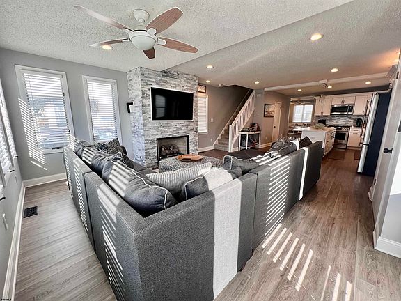 WEEKLY RENTAL AVAILABLE IN JUNE & SEPTEMBER ($2,000 per week), & JULY 6-JULY 13 ($4,500) - Beautiful 3 bedroom, 2 bathroom renovated Home in the best part of Ventnor! First floor has a large open concept kitchen with oversized island, quartz countertops, high end cabinets with soft close doors and drawers, all appliances are GE Caf series. The family room has a gorgeous stone fireplace and is surrounded by windows filling the space with an immense amount of natural light. A dining room with seating for 6 leads the way to the back of the house, where there is a full bathroom, laundry room, walk-in pantry, and garage/storage area. The backyard has updated outdoor shower, BBQ and space for outdoor dining on those gorgeous summer nights. Upstairs there are three large bedrooms with ample closet space, lots of natural light, and a full bath. One block from Margate, on the same block as the start of the boardwalk, and some of the best restaurants in the area are just half a block away! (Waterdog, 7311, Hannah G's). 2.5 blocks from the beach. Off street parking for 2 cars. Check in 4:00 pm. Check out 12:00 pm. Tenant to provide linens (bed linens and towels). There are linens services like https packlitenj. 2025-06-03