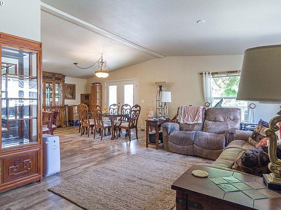 A slice of heaven! 3 bed 2 bath Double wide with covered front porch in a quiet neighborhood. Laminate flooring through out. Home has a 2 car garage that is extra deep with an insulated shop area with AC and a half bath. A Gazebo, fruit trees, apricot, Peach, Apple, Cherry, Pecan and Walnut and grapes! There is also a Greenhouse and a tool shed. A hot tub that can be included with a full price offer. There is also a wind generator All this on a double lot.