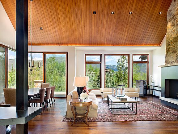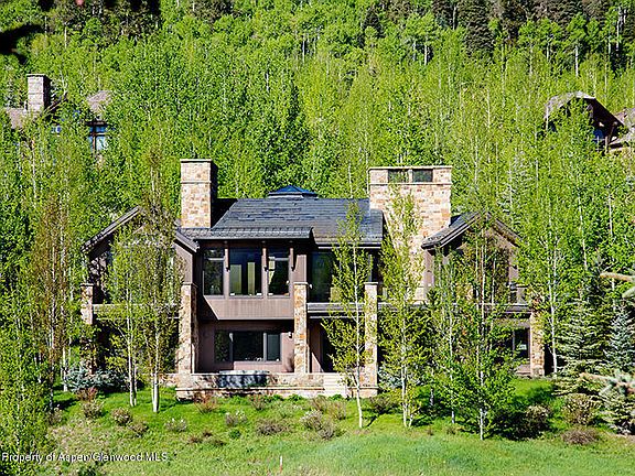 Located on the 10th Fairway of the Tom Fazzio-designed Maroon Creek Club golf course, this handsome home features the ultimate in luxury and quality. Featuring rich, quarter-sawn walnut hardwood flooring, strong stone staircases and accent walls, granite, marble and onyx surfaces throughout. A sophisticated smart home system offers convenience and ease with Lite Touch controls, an AMX fully integrated home audio/visual system and electric shades in every room. Vaulted ceilings with Robert Singer-designed recessed lighting gives the home a warm glow day and night. Dramatic mountain views from floor to ceiling windows or from one of the three private terraces. Six bedrooms (one currently designed as a highly-effective office), three separate entertaining areas, a 500+ bottle wine room