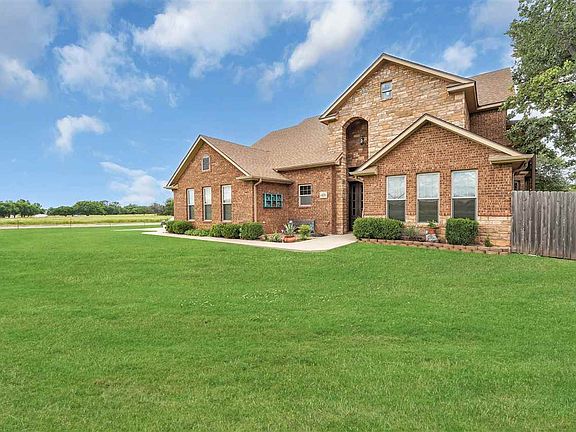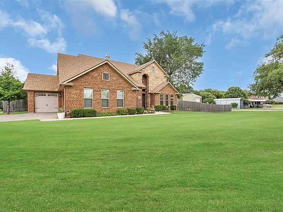 Absolutely amazing custom built home on a 3 acre corner lot just a stone's throw from the city of Cache. Sitting on a beautiful tree lined property, the home comes complete with an inground pool with stamped concrete and wood decks and an insulated workshop that could also serve as a residence if needed. The home has a great open floor plan with the kitchen overlooking the great room with a wood burning fireplace. The great room and kitchen area all have ceramic tile flooring. The kitchen is a gourmet's delight with a Jenn aire cooktop with downdraft venting, built in combination baking oven and microwave. There is a large granite breakfast bar that is perfect for casual dining. There is also a formal dining room off the entry that has a closet so it could serve as a study as well. Off the great room is a 1/2 bath and that leads into the primary bedroom. The bedroom has two walk in closets...one in the bedroom and one off the ensuite bath. The 17' x 7' walk in closet off the ensuite bath is also a safe room...one of the largest safe rooms you'll find. The ensuite bath has a double granite vanity, whirlpool tub and separate tiled shower. Upstairs there is a large game room with hardwood flooring and a wet bar with a refrigerator perfect for entertaining. There are also double doors leading out to a wrap around balcony that covers nearly half the upstairs. There are two bedrooms and a full bath upstairs plus another bonus room that could be an office, fitness room or another bedroom. The yard area is perfect for entertaining with a stamped concrete deck around the 18' x 32' pool and another wood deck above it in a fence in area. Then you have a short walk to the 2080 SF workshop complete with 16' high overhead door big enough to pull an RV through. The workshop also has closet space, a ~ bath and ductwork for a hvac system should someone want to use it as guest residence space. To protect against storm damage and to give a new buyer an insurance discount, the owners just installed a new class four hail resistant shingled roof. Three windows were replaced and all the lower house screens as well. The home comes with two water heaters (one of which is new) and two hvac systems. The three car attached garage has plenty of space for vehicles or storage. There are two separate driveways into the property one on Gore and one on Crater Creek Road. This is the complete package with something for everyone, all located about a mile from all the Cache Schools. Call Barry Ezerski at 580-704-7355 to see this slice of country heaven today.