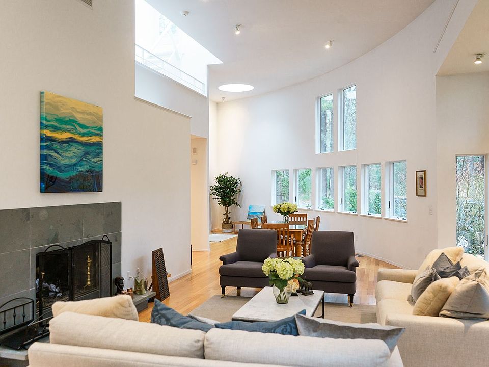 Rental Registration #: 16-2675 Come enjoy your summer in the Northwest Woods of East Hampton, minutes to an amazing uncrowded bay beach. A beautifully designed contemporary on 2.5 serene acres offers; high ceilings in the living room with fireplace, dining room, open plan, a primary bedroom on the first floor with two additional guest bedrooms upstairs, and a gourmet kitchen. The home features a pool and plenty of outdoor decking. The lower level is setup as an office with French doors leading to a garden patio. The Northwest Harbor bay beach is at the end of the road, allowing easy access to all summer watersports activities. July/August 2022 are available for 80k.