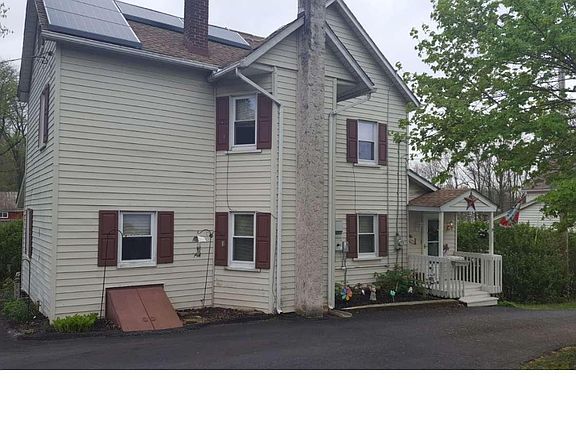 Perfect property for contractor, landscaper, anyone looking for extra storage, work shop, office space. This unique home was built as a cigar factory and in 1920 was converted into a four bedroom home. Since the four bedrooms have been converted into two larger bedrooms. The master bedroom could easily be converted back into two smaller ones as the closets and door entry could be reopened. The walk up attic is heated and could also be made into another bedroom. From the storybook front porch you enter into an office/study. The great room with original wood staircase has sliding glass doors to a private deck with retractable awning, electric fireplace that could be converted to wood or gas. Completing the first floor is formal dining room, kitchen with tile backsplash, electric stove, and dishwasher, and updated full bath. Upstairs there are two bedrooms, full bath, and entrance to third floor walkup attic. Full walk out basement with laundry. The property consists of 2 parcels, detached garage with attached room, 28 X14 insulated workshop, 220 line, and air compressor, two additional sheds 10 x 14 and 8 x 10. The private back yard is great for gardening, and entertaining. Some of the recent updates include new windows, doors, ceiling, roof, well pump and tank, oil tank, water treatment system, and installation of solar panels in 2016. Taxes and assessment are for the combined parcels. Make your appointment today.