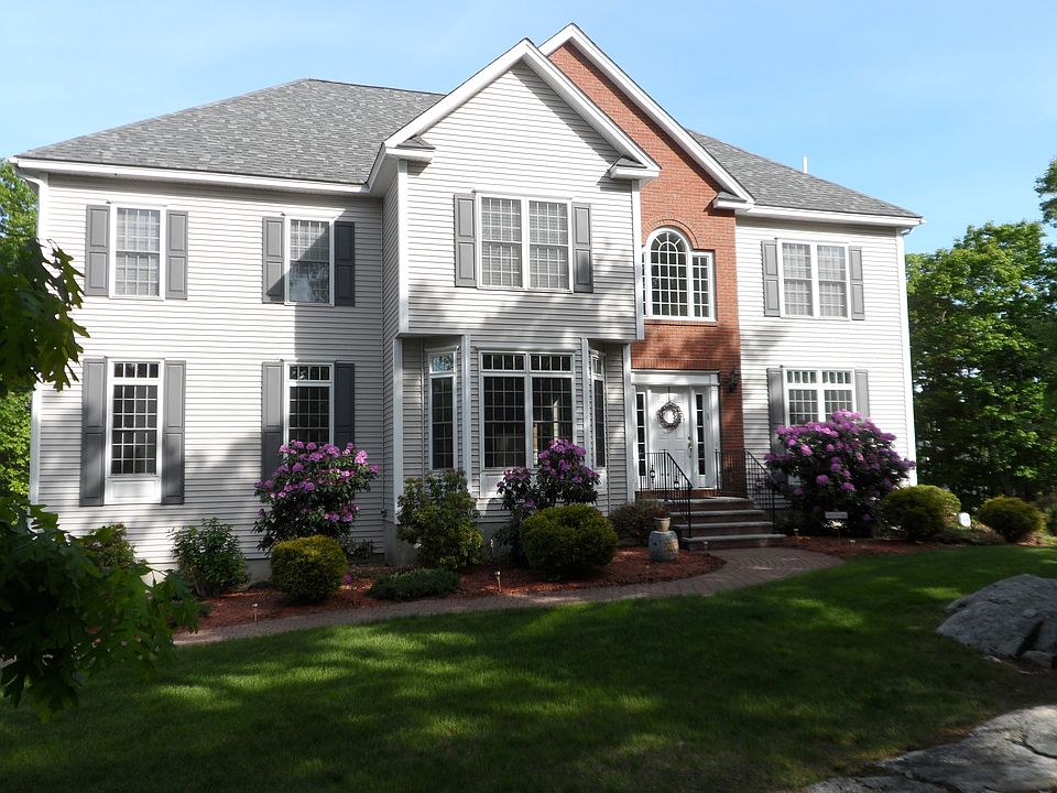 Impeccably maintained like new contemporary Colonial is loaded with custom upgrades and comforts! This home is well situated on a quiet and private lot set back from the street with great access to services and commute. Natural light floods through beautiful windows bathing the gleaming hardwood floors throughout. Entertain in fabulous premium Gourmet kitchen with Extra Large Granite Island, Butlers pantry, cherry furniture grade cabinetry, abundant storage, commercial stainless appliances, spacious open floor design looking out to dramatic family room with bowed balcony, cozy floor to ceiling mantled wood fireplace, and cathedral sunroom. Luxury can only include tasteful well sized and appointed master suite with 3 additional bedrooms with loads of Storage and Built ins. Natural stone details, large deck, brick patio in private level back yard. Miles of hiking trails, skiing, cycling, and kayaking within walking distance!
