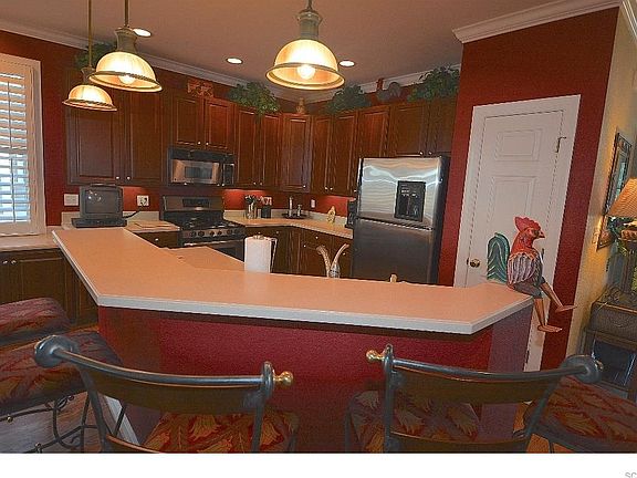 This home has it all. Location, designer furnished and every builder upgrade, Steps to the indoor pavilion and clubhouse. This is truly a sought after location. Wide plank hardwood throughout, Corian counter, stainless appliances, built in butler's pantry, build in bar, under cabinet lighting, built in shelving in closets, plantation shutters. Easily converted to 4 bedrooms, sunroom, oversized screen porch, brick paver patio, with built-in gas grill, enhanced landscaping and irrigation, conditioned crawlspace, recently painted exterior and panoramic golf views!