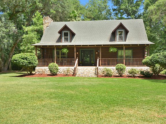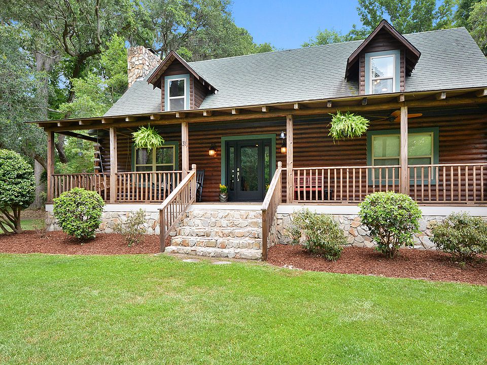 Breathtaking views come with this stunning 2 bedroom 2 full bath, Log Cabin with an estimated 1839 sq. ft. of living space situated on nearly 2 acres of landscaped, usable yard. Featuring an open floor plan and a newly renovated kitchen with counter seating, stainless steel appliances, and quartz counter tops. Look into the expansive living room with a 30 foot custom stone fireplace surrounded by full-view large scale windows and take in the majestic Live Oaks and Spanish Moss from all corners. The upstairs master suite with adjoining spa-like en suite with jetted tub, walk in shower and double vanities offer ultimate privacy and comfort. Additional features of the home include two additional work shops that can offer extra storage for all your country living needs. Large covered front porch for complete southern charm, new deck for entertaining, new energy efficient windows, new HVAC system, garden area, playhouse, and state of the art whole home water filtration system. This one-of-a-kind home is a Lowcountry hidden gem; a unique and rare opportunity that is seldom available. Located on a dead-end soft sand road positioned between a pecan farm and open land, POA free so park your boat, let your dog run and allow the pace of life to slow down at 31 Okatie Bluff Road. Convenient to the public dock of Camp St. Mary and roughly 500 yards from the shores of the Okatie River. Zoned for Beaufort County schools and convenient to Bluffton as well as downtown Beaufort. Accompanied by a variety of wildlife, fruit trees, green pastures, and sparse traffic. Country living with just a short drive to town for shopping and dining or less than 30 minutes to Hilton Head or Savannah. Close to it all, but a world away! Realtors welcome.