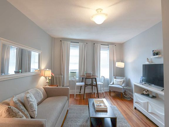 This sun-drenched, top-floor 1-bedroom apartment offers lovely city views and sits in a professionally managed, classic Boston building. The apartment features soaring ceilings, hardwood floors, a renovated kitchen with granite countertops, and plenty of wood cabinetry. The spacious living room includes a sleeper sofa, work desk, dining table, and flatscreen TV. The cozy bedroom is outfitted with a plush queen pillow-top bed. Coin-operated laundry is located in the building's lower level. Pets are considered on a case by case basis. There is an additional $150 pet cleaning fee as the apartment has to go through a special cleaning after your stay. Guests bringing pets will be required to sign a pet contract. Parking is available at $15 per night. Parking is at a first come first serve basis and has to be reserved ahead of time to guarantee a space. Pack n' Play and high top chair available upon request for $10 per night. There are several restaurants, centers, coffee shops, and more all around the condo. You are located a 1-minute walk from Cleveland Circle and 15 minutes from Washington Square, with several shops, restaurants, and coffee shops. You are within a 35 minute walk to all three Green Line trains (B, C, D lines). You can take the Green Line trains directly to Copley Square, Downtown Boston, Boston Common, Park Street, Fenway, Kenmore, as well as the Longwood Medical Area hospitals. The elevator is small. This is a fully furnished unit offered for short-term, transient use only. It is not a rental tenancy or lease. All guests must maintain a primary residence elsewhere and agree to abide by house rules, maximum occupancy, and payment terms. No subletting or unauthorized guests. There is a $150 lost key fee and $100 lock out fee. A welcome booklet will be emailed two weeks prior to arrival, it will include information about the property. 3 days prior to arrival arrival instructions will be sent which contains a navigational application that guides directly to the property.