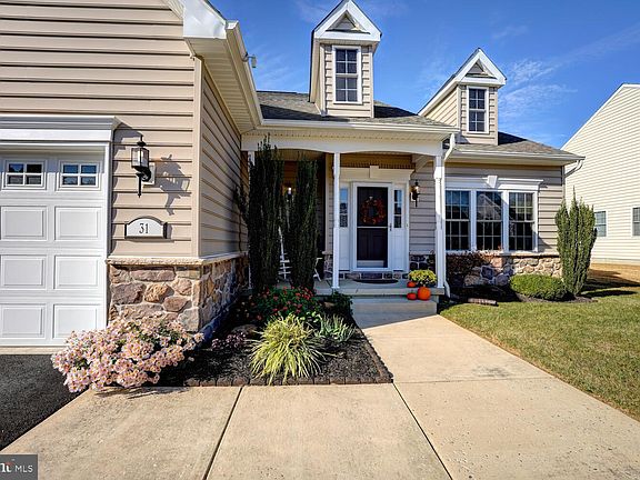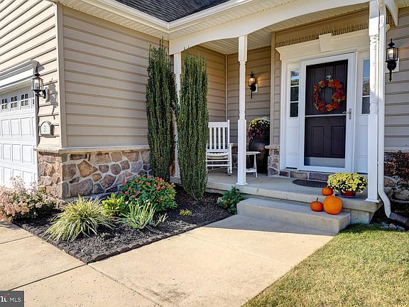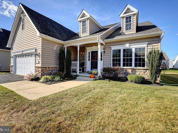 Full Basement! One Story Living! Upgrades Galore! Why wait for new construction this beautiful home is in excellent condition and ready to call home all in the desirable 55+ community of Village of Eastridge. Conveniently located to shopping, route one access and only 45 minutes from the Delaware beaches. . Outside you will notice the beautiful landscaping with stone exterior full front porch for relaxing in the evenings. Enter the home and you will see pride of ownership. First you will be greeted with gleaming hardwood flooring, open floor plan with a very large kitchen with gas cooking, 42" cabinets, full island, granite countertops and stainless steel appliances. The kitchen is open to an oversized family room with vaulted ceiling. Off of the kitchen there is a 14x12 composite deck with a sun-setter awning. The master has a full bathroom with walk in shower, double sinks and a walk in closet. Bedroom #2 also is complete with a walk in closet so there is plenty of room for storage. Bedroom #3 being used as a office with built in custom cabinetry and French glass doors and can easily be converted back to a bedroom. Full size laundry completes the first floor. Transition down the basement where the opportunities are endless if you decide to finish. Currently has a workshop and workshop benches and all shelving are included in this sale.. The Village of Eastridge offers loads of open space, walking trails, picnic areas, bocce ball, shuffleboard courts and a beautiful clubhouse w/ billiard’s, exercise room, LOW HOA fees includes lawn maintenance clubhouse privileges, snow removal and common area maintenance. Sale includes Choice Home Warranty until July 1, 2025 This home is a "must see" put this on your next tour.