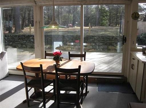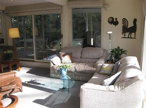 This 8 rm Contemporary excels in bringing the outdoors in! A fp\'d LR, adjacent Dining area & Kit share a wall of glass that opens to a private deck & nice, level play yard beyond. Just off the Kit is a famrm & laundry w access to a 2 car att garage. A nice screened porch is ideal for morning coffee or summer dining. Upstairs are 4 bedrooms and a full bath. The legal apartment (kitchen, bedroom, sitting room & full bath) is rented thru June- $1100/mo was once part of the main house (LR & Master)
