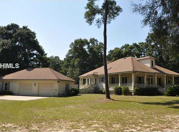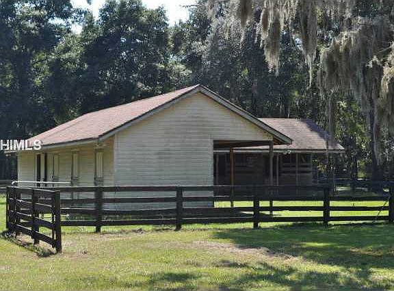 EQUESTRIAN property, 25 minutes to HHI and 20 minutes to SAV! Lowcountry style with 3 BR and 3-1/2 BA on FIVE ACRES, with barn (6 stalls), three (3) paddocks, plus a training ring and 2 car garage. Also, miles of neighborhood riding trails. HardiPlank siding. New well pump 2019. 2,864 SF home, good bones, needs updating, but priced to sell in a great horse property area near Palmetto Bluff.