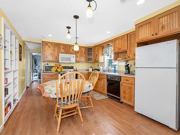 Welcome to one of the most desirable lots in the park. This charming home offers a spacious yard and a private wooded back yard, perfect for relaxation and outdoor enjoyment. The standout feature is the oversized 16x20 shed, complete with an 8x20 covered screen in porch and also a additional 8x20 open bay, providing abundant storage and workshop with many other possibilities. Inside, the home features an inviting eat-in kitchen with beautifully updated cabinetry and a bright living room with gleaming hardwood floors. The layout includes 2 comfortable bedrooms and a full bath equipped with a convenient stackable washer and dryer. Newer on-demand hot water system for endless hot water. Central air conditioning for comfortable summer living. Located in a well maintained, pet-friendly co-op park. This property offers exceptional value, outdoor space, and comfort. Don’t miss the opportunity to make it yours!