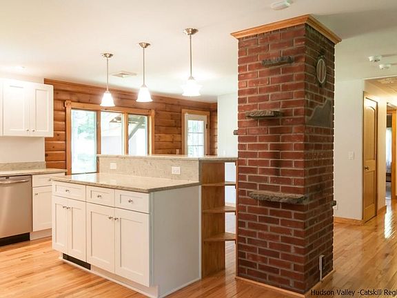 Horse Lovers Paradise! Wonderful, completely renovated contemporary log style home on 12.7 acres of meadows and woods located in low-tax Olive. The home's open floor plan includes a beautiful gourmet kitchen with center island, living room, and dining area with easy access to a lovely covered front porch, back yard and a heated breeze way. The master bedroom suite features a cozy sitting room/library and full bath with an over sized shower. The basement is partially finished with three separate rooms, and it's own full bath, making it ideal as a guest space, additional bed or play rooms, family room, office, work out rooms, studio, etc. The house has been completely renovated within the last 5 years with new kitchen and bath rooms, solid oak flooring, new roof, central air, generator hookup, new boiler, to name a few. The 5-stable horse barn is only a short walk up from the house. It has water and electric and includes a run in shed, a pen for smaller animals, and access to 3 fenced in horse pastures. The owner had horses there until very recently. The property adjoins state land for additional exploring, walking, etc. There is a chicken coop and pen, and a few sheds for materials, making this an ideal hobby farm, horse property, or nature enthusiast. The location is only a few minutes away from the magnificent Ashokan Reservoir, about 25 minutes to Woodstock and 15 to Stone Ridge. This is a really great property all around. (down stairs finished area is not included in square footage).