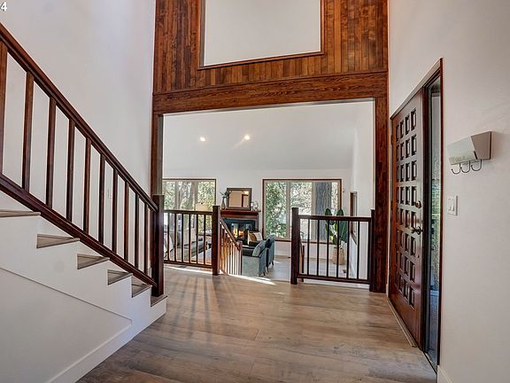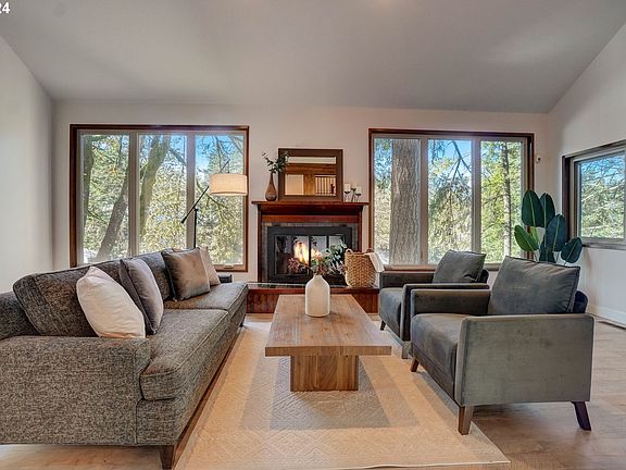 BOM! Stunning, NW contemporary nestled in the trees of coveted Mountain Park! This home offers privacy and tranquility with its oversized deck and large private lot. This stunning home was designed for entertaining, offering two separate living spaces with wood burning fireplaces, a formal dining room and soaring ceilings. The kitchen is a chefs delight featuring new gas cooktop, large island and granite countertops. The spacious primary boasts a walk-in closet and separate seating area. An additional bonus room with outside entrance makes this home perfect for guests and multi-generational living. Newer carpet and flooring, interior paint, windows and roof. Two car garage. Minutes to New Seasons, trails, shopping, parks and rec center!
