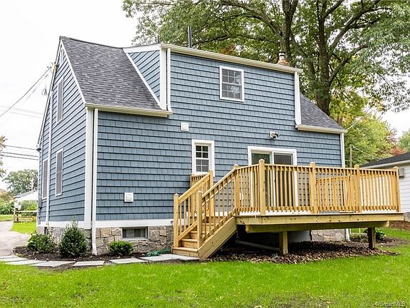 Better than new three bedroom, two full bath cape in Prospect. This adorable home has been completely renovated from top to bottom. The exterior has new siding in an eye catching blue with white trim that pops! New roof and all new windows. The level lawn has beautiful new grass sprouting and flagstone walkways adorn the front and side of the home. If that isn't enough to make a good first impression, you will love the covered front flagstone porch. The entry door makes a statement with stylish beveled glass. As you enter this home, the spacious living room will be perfect for entertaining in. Off the living room is a laundry closet and full bathroom. The eat-in kitchen features sliders out to a new deck, stainless appliances, timeless and durable quartz countertops and custom soft close cabinets. The main level bedroom features its own private deck for morning coffees and quiet time. Upstairs are two spacious bedrooms with large walk-in closets and a second full bathroom. This home is located close to shopping, golf course and restaurants and minutes from Route 8 and I-84.