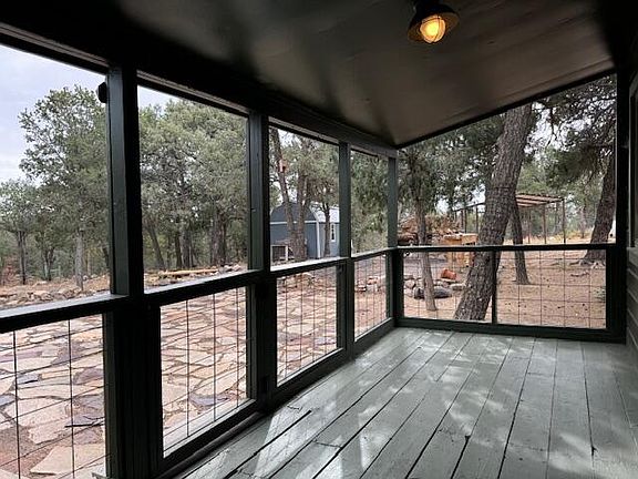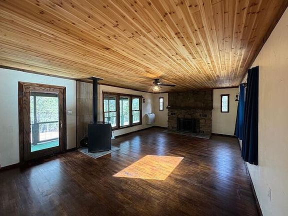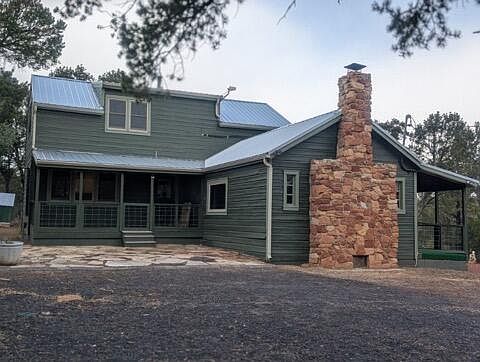 Nestled among towering pines, this inviting 3-bedroom, 1-bath mountain home has been beautifully updated inside and out, blending modern comforts with rustic charm. Recent improvements include durable Anderson windows, roof, paint, and a fully renovated kitchen, ensuring a stylish and functional space for everyday living. Wood and laminate flooring throughout add warmth, while mini-splits provide year-round comfort alongside a cozy fireplace, wood stove, and pellet stove. Enjoy the fenced primary area of the property, which includes dedicated sections for gardening, a dog run, and a coop for chickens, turkeys, and peacocks. Seasonal porches allow you to unwind while soaking in the fresh mountain air.