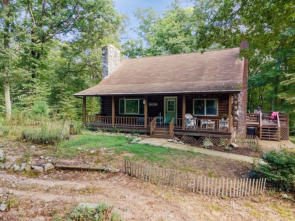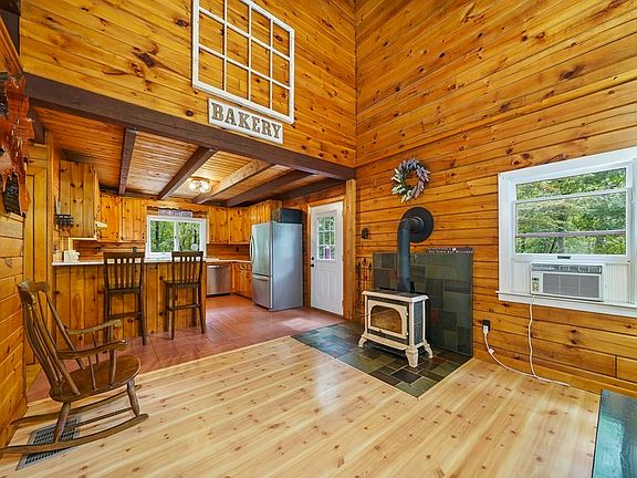 Hello nature lovers! This charming log cabin home is nestled on 6+ acres of woodlands. Its rustic charm is perfect for cozy, cabin living. The property offers lots of space for gardening, farm animals, and natural wooded seclusion. Insideyou will find lofted ceilings with exposed woodwork and knotty pine throughout. In the winter, cozy up by one of the wood stoves. The kitchen was recently updated with quartz countertops and stainless steel appliances. The first level has a large bedroom and full bath, while the second floor has two bedrooms and an additional full bathroom. The walkway to the second floor is lofted and open concept to the living area. Downstairs is a finished basement with space for a home office, play area, or gym. The detached two stall garage has a tremendous amount of room above, with potential to be finished space. The 6 acres includes a 1 acre lot with good road frontage that could be subdivided and and sold separately. Offer deadline is 6pm on Monday 8/29.