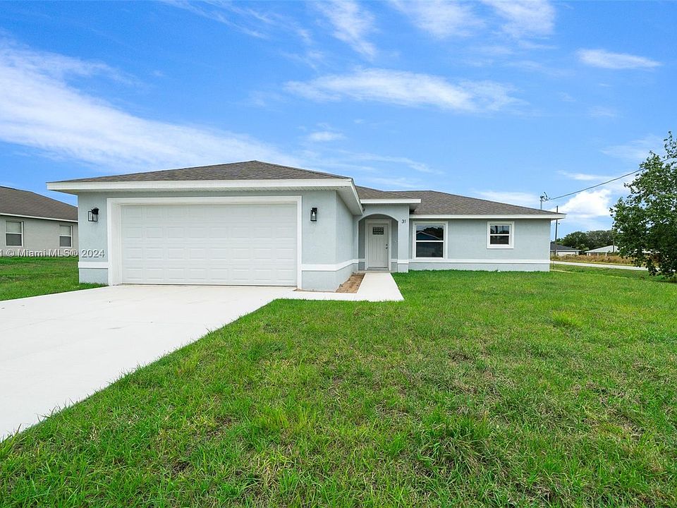 BRAND NEW Construction in SE Ocala. Open floor plan, luxury vinyl flooring, modern finishes, ample spaces, lots of light, and plenty of storage. 3 bed, 2 bath on 0.26 Corner Lot. Primary bedroom with vaulted ceilings, natural light, spa-like bath with dual vanities, contemporary fixtures, and tiled walk-in shower with sitting space. Oversized walk-in closet. Gourmet kitchen with granite countertops and quality cabinets. Back porch for relaxation. Perfect for first home or investment.