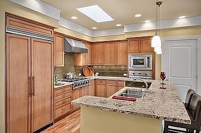 Port Gardner~Top floor penthouse w/ panoramic views of the Puget Sound and Olympics! This 2 bdrm, 2 bath, + den, has it all! Gourmet kitchen with Viking appliances, 6 burner gas cooktop, warming drawer with gorgeous slab granite counters. Very established high end feel with skylights and 17 foot ceilings in living area, along with wide crown moldings throughout. Master w/ deck access, 5 piece bath and large walk-in closet. Laundry rm w/ built-ins for storage. Gas fireplace and A/C.
