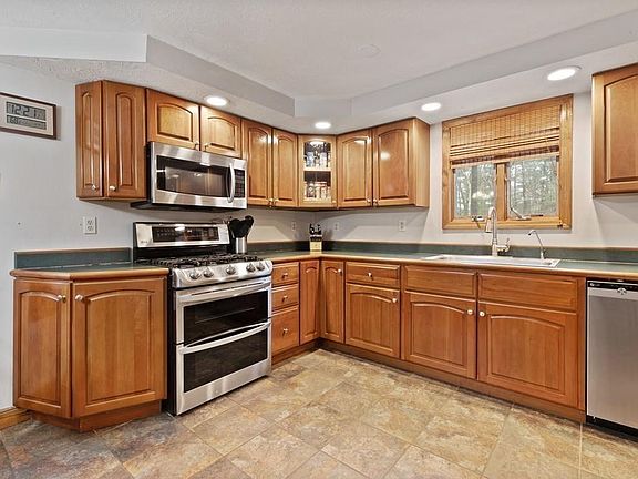 Situated in a peaceful setting with captivating sunsets over the adjacent pond this Duxbury home is one to be seen. Open floor plan with vaulted ceilings and skylights creates lots of natural light. Eat-in Kitchen with maple cabinets with cherry finish and stainless steel appliances with tiled floor opens to the living room with wood burning stove. Wood stove does a great job heating the house in the winter time and makes the living room very cozy. Master bedroom with walk-in closet and additional closet and bathroom with shower and separate bathtub. Whole house generac generator recently installed. Beautifully landscaped, honey suckle plants line the patio fence large well kept lawn with automated sprinkler system for the lawn. Four-season room with heated floor and pellet stove looks out over pool and patio. Two year old stamped concrete patio.