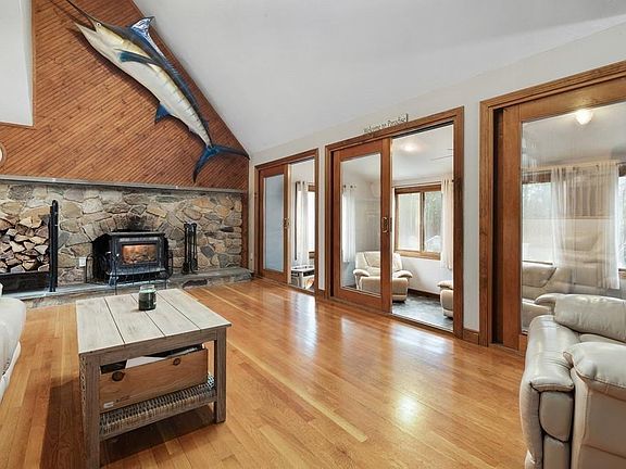 - Liv Dscrp: Flooring - Hardwood, Slider, Skylight, Wood / Coal / Pellet Stove, Ceiling - Vaulted